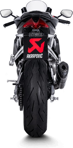 Designed to optimize power and torque from the 660 cc parallel-twin powerplant, this system meets EC/ECE type approval, making it fully Euro 5 compliant. With the catalytic converter located in the front part of the pre-muffler, to ensure the system fully complies with the regulation, the system has a plug-and-play installation with no remapping needed. Constructed from high-quality carbon fibre, lightweight titanium, and high-grade stainless steel, the system has been created using race-proven materials. Designed to emphasize the racing look of the machine, the system is 0.4 kg lighter than standard stock. Testing on the Akrapovič in-house dyno, in back-to-back runs of bikes equipped with a Racing Line (Carbon) exhaust and standard stock exhaust system, recorded an increase of 2.4 hp at 11,200 rpm and a gain of 3.6 Nm of torque at 4,550 rpm, which gives the rider a pronounced throttle response. Its deep, full, and sporty sound, with its throbbing parallel-twin pulsations, offers the feeling of riding a bigger capacity bike, making the Akrapovič Racing Line (Carbon) for the Aprilia RS 660 the ideal exhaust for this middleweight sports bike.