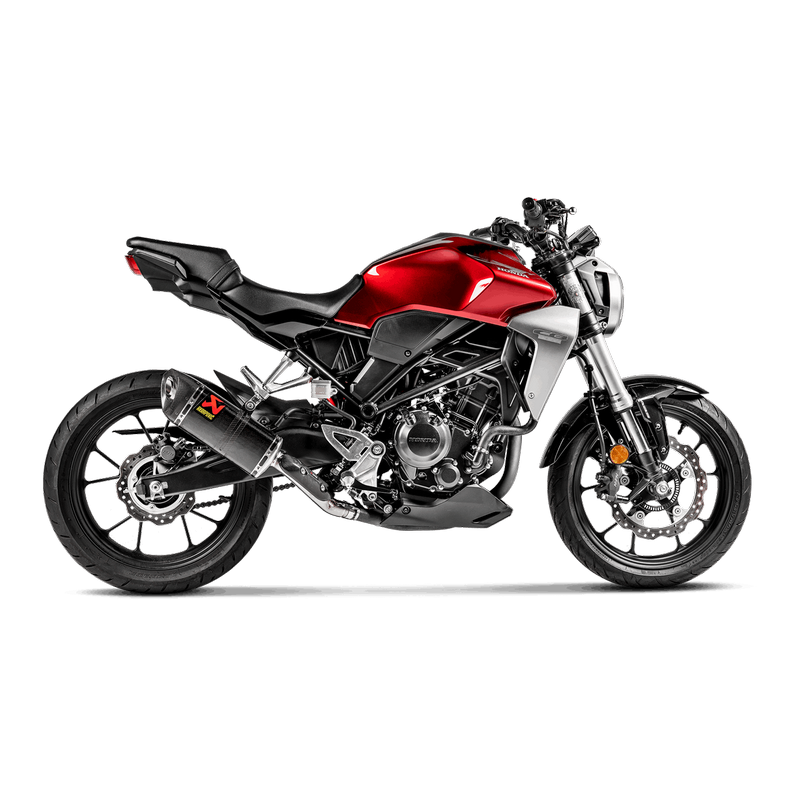 +1.0 kWat 4200 rpm+2.1 Nmat 4100 rpm-3.9 kgSlip-Ons represent the first step in the exhaust system tuning process, and they offer a great balance between price and performance. Change the nature of your bike by adding more power, improved performance, and the unique Akrapovič sound. Everything packed in stylishly designed Slip-On exhaust systems. The result of taking design very seriously is a beautifully crafted exhaust system with a carbon fibre muffler outer sleeve and end cap. Race-proven materials.THIS PRODUCT DOES NOT MEET EMISSION COMPLIANCE REQUIREMENTS FOR STREET OR HIGHWAY USE.