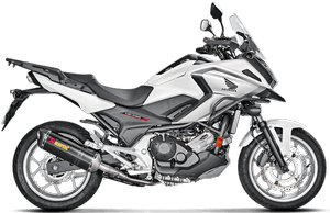 The Slip-On represents the first step in exhaust system tuning. It is simple to install and replaces a stock muffler. It also offers the best combination of price and performance.With the Akrapovic Slip-On system you will get more power, more torque, and less weight. The Akrapovic Slip-On system gives your motorcycle that unmistakable deep resonant Akrapovic sound and also dramatically changes its visual appearance. Each product features Akrapovic’s finest carbon fibre end caps.Exhaust system is compatible with Honda side cases and central stand.