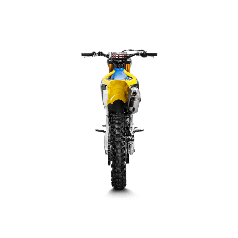 +0.7 kWat 7300 rpm+1.4 Nmat 5950 rpm-0.9 kgFOR CLOSED COURSE COMPETITION USE ONLY. NOT INTENDED FOR STREET USE.Derived from the world-championship RM-Z450WS exhaust, theEvolution Line is constructed from high-grade lightweight titanium, which saves over 20% in weight compared to a stock system, enhancing handling. It is coated in a durable finish for increased scratch resistance and easier cleaning. It has improvedthrottle response and the unique Akrapovič sound – which is within FIM limits – and is easy to install. The system comes with a spark arrester to comply with North American off-road regulations.