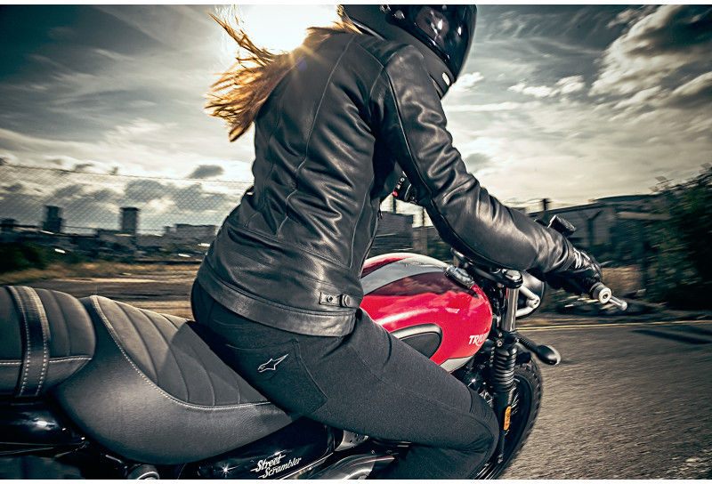 • Stretch accordion panels on knee area to increase comfort in riding position