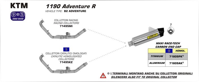 ARROW KTM 1190 ADVENTURE R'13 HOMOLOGATED ALUMINIUM DARK MAXI RACE-TECH SILENCER WITH CARBON END CAP | 71809AKN