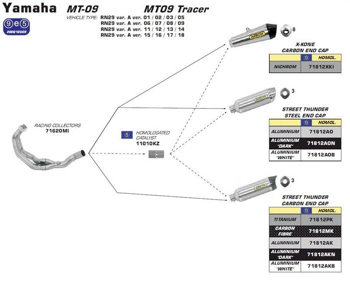 ARROW YAMAHA MT 09 '13 HOMOLOGATED CARBON THUNDER SILENCER WITH CARBON END CAP FOR ARROW COLLECTORS | 71812MK
