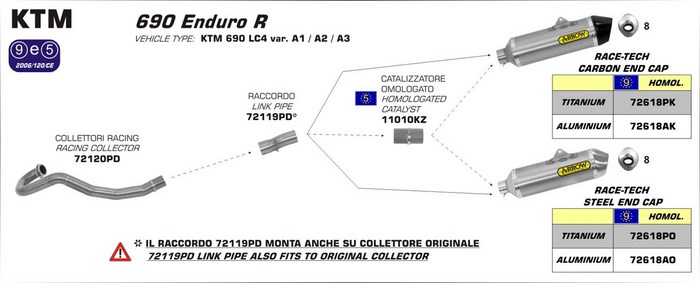 ARROW KTM 690 R '09/14 HOMOLOGATED TITANIUM RACE-TECH SILENCER FOR ARROW LINK PIPE | 72618AO