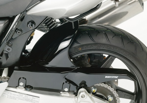 The BODYSTYLE Sportsline rear hugger creates racy dynamic outlines at the rear wheel of sport and naked bikes. This paintable styling part made of high-strength ABS plastics works as splash guard for the central spring leg. With ABE.