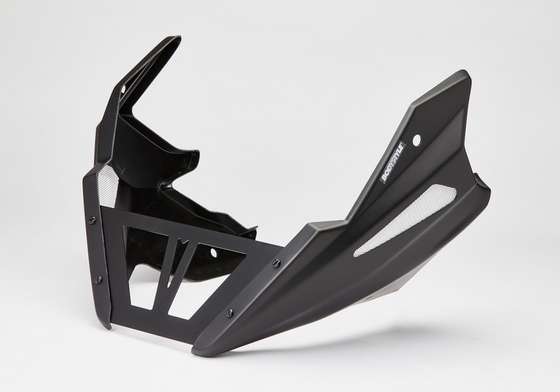 The BODYSTYLE Raceline belly pan with cut-outs at the side gives a cool racelook to sport and naked bikes. This paintable styling part made of high-strength ABS plastics is delivered with ABE.