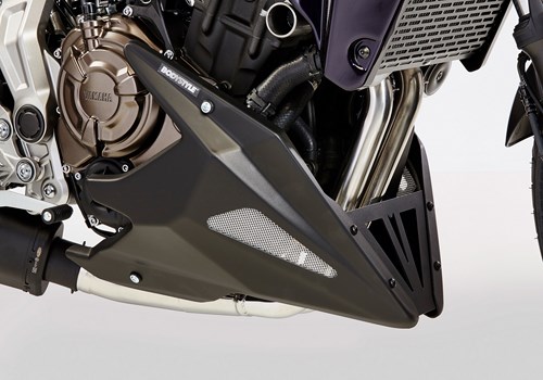 The BODYSTYLE Raceline belly pan with cut-outs at the side gives a cool racelook to sport and naked bikes. This paintable styling part made of high-strength ABS plastics is delivered with ABE.