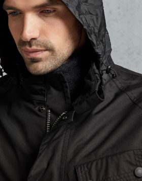 Crafted from a heavy, textured, technical nylon, the Fenchurch, in black, has a mesh lining, a water-repellent, stowable hood and CE-compliant D30 T5 EVO X range elbow and shoulder protection. Both practical and stylish, the Fenchurch is fully seam-sealed with contrast taping, while the three flap pockets and central placket have rubberised, snap-closure fastenings. Additional features include under-arm metal vents for thermal regulation, adjustable throat latch and waist for a comfortable, custom fit, and subtle, reflective detailing on the cuffs and collar.
