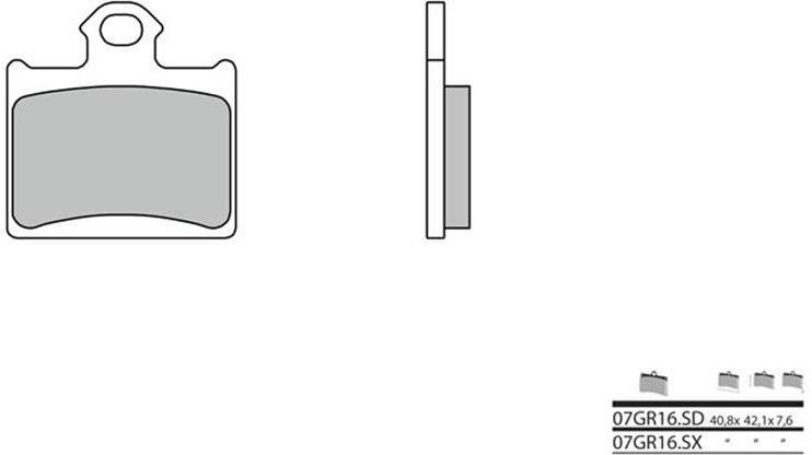 These materials are designed to guarantee maximum efficiency under the various conditions encountered habitually in off-road riding – not only cold and heat, but inhospitable terrain as well (water, sand, mud), where braking at low temperatures is also a key requirement. With this in mind, resistance of the material to weathering agents is particularly important.SD: sintered Off-Road. Good efficiency and stability under all operating conditions. Suitably resistant to wear, even when exposed to water and mud. Less aggressive than the SX, giving more flexible control.