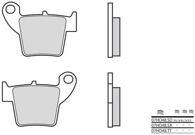These materials are designed to guarantee maximum efficiency under the various conditions encountered habitually in off-road riding – not only cold and heat, but inhospitable terrain as well (water, sand, mud), where braking at low temperatures is also a key requirement. With this in mind, resistance of the material to weathering agents is particularly important.SX: sintered Off-Road and Supermotard. A notably aggressive pad able to withstand high temperatures, recommended for Motocross and Supermotard. Particularly steady performance.