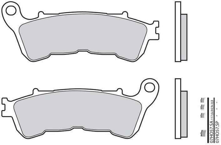 These are characterized by a high friction coefficient that stays constant whatever the operating conditions – in heat and cold alike – as well as resisting wear, for superior durability and better mileage.SP: a sintered compound intended for rear brakes, stable in all operating conditions