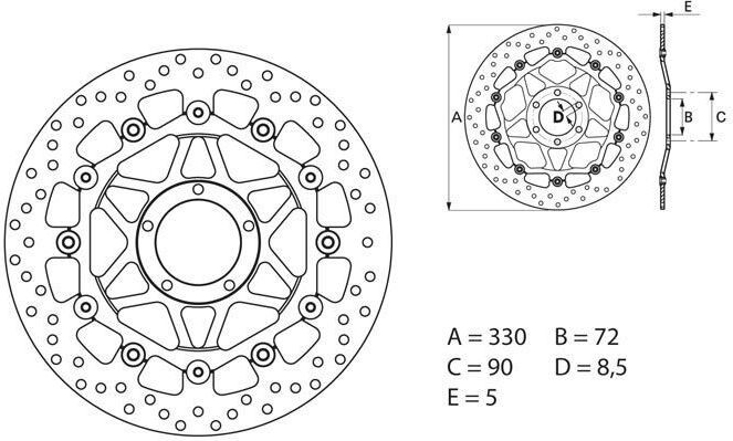 Brembo Serie Oro brake discs represent the best that the market has to offer, with a range of products boasting superlative technical content and quality. Available in both fixed and floating versions, these discs are fully interchangeable with original production discs.Floating discFloating discs are made from only the highest quality materials available to deliver unparalleled performanceThese consist of a braking rotor in stainless steel, connected by 10 fastener screws to an anodised aluminium alloy hat.Highers braking powerQuality and performance guaranteedEfficient in all weather conditions : heat, rain, cold…