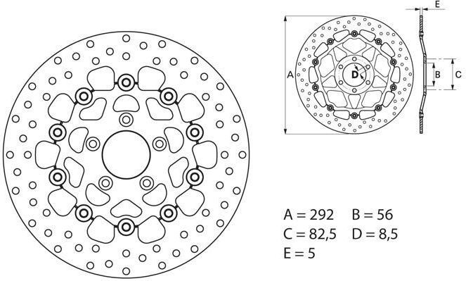 Brembo Serie Oro brake discs represent the best that the market has to offer, with a range of products boasting superlative technical content and quality. Available in both fixed and floating versions, these discs are fully interchangeable with original production discs.Floating discFloating discs are made from only the highest quality materials available to deliver unparalleled performanceThese consist of a braking rotor in stainless steel, connected by 10 fastener screws to an anodised aluminium alloy hat.Highers braking powerQuality and performance guaranteedEfficient in all weather conditions : heat, rain, cold…