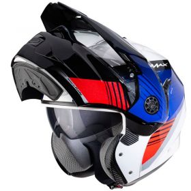 Tourmax is the first flip up Adventure on the market conceived for all the Eunduro and Maxi Enduro motorcycles owners. As result of the long experience gained by Caberg, the first Italian company to produce flip up helmets, the new TOURMAX 100% Made in Italy is equipped with a peak that automatically moves close to the visor when opening the chin guard in order to minimize air resistance. Tourmax comes with the dual homologation P/J which allows you to ride with the chin guard open guarantying safety thanks to the lever P/J on the left hand side of the helmet. This lever when in the “J” position, blocks the chin guard in the fully open position avoiding the chin guard to accidentally close. Tourmax is equipped with the exclusive Double Visor Tech system that, thanks to the easy to use inner sunvisor, allows you to ride always with the right light and in safety. The inner sun visor is treated anti scratch , while the outer clear visor is not only antiscratch but also antifog thanks to the double lens Pinlock. Ventilation is guaranteed by two wide vents placed on the chin guard and on the shell that are easy to maneuver also with gloves. The air is channelled through grooves on the inner liner that ensure perfect ventilation of the helmet. The lining is completely removable and washable, realized with breathable and hypoallergenic fabric for maximum freshness, with reflective inserts at the back of the neck. Tourmax is offered in the single col :matt black, matt gun metal, and white metal; and in a sport graphic version the SONIC with white base. Tourmax has a seating to accommodate theCaberg Bluetooth communication system “JUST SPEAK EASY” which allows to com