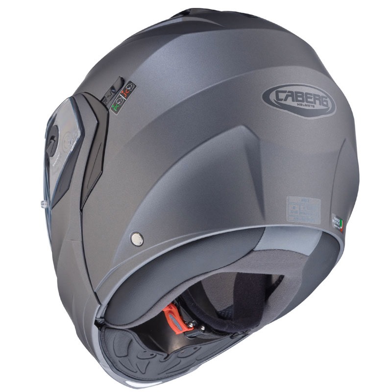 DUKE II is the result of the acquired experience of Caberg that was the first Italian company to produce flip up helmets. DUKE II comes with the dual homologation P/J which allows you to ride with the chin guard open guaranteeing safety thanks to the lever P/J on the left hand side of the helmet. This lever, when in the “J” position, blocks the chin guard in the fully open position avoiding the chin guard to accidentally close. Thanks to the reduced dimensions of the helmet, the weight of DUKE II is only 1550 gr +/- 50gr.