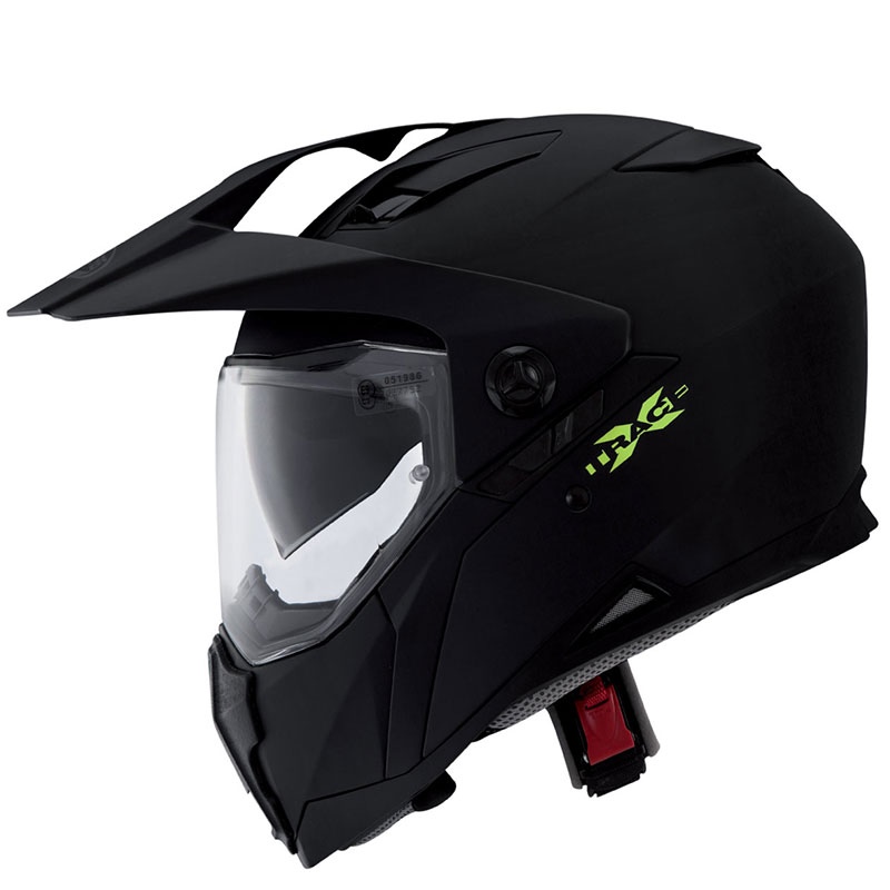 Xtrace Technical details Characteristics Shell: polycarbonate Double shell size Double visor (clear + smoke) Anti-scratch visor ready forPinlock Micrometric buckle Internal air-circulation Removable and washable liner Removable stop-wind Rain protection rims Removable peak Removable nose/shield.