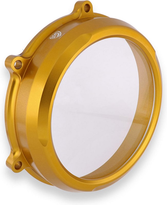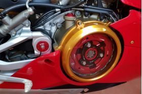 Clear oil bath clutch cover for Ducati Panigale V4, made in light alloy, machined from solid and then anodized.