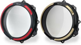 Clear oil bath clutch cover for MV Agusta 3 cylinder made in light alloy, machined from solid and then anodized.Transparency is obtained with a panel Lexan, resistant to shock and temperatures, while the watertightness is guaranteed by specific O-ring.For assembly it is possible to use the original screws or buy our titanium screws kit KV432X