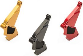 Sprocket cover CNC machined from light alloy billet and then given an anodized surface finish. It replaces the stock plastic part, giving a high-end race-style look. No modifications required to fit the cover.