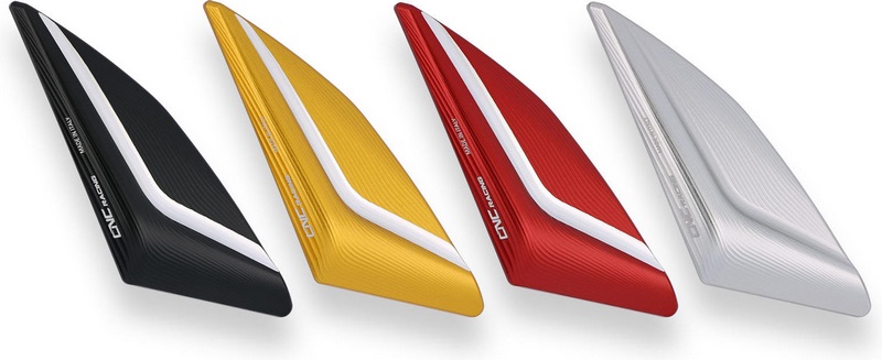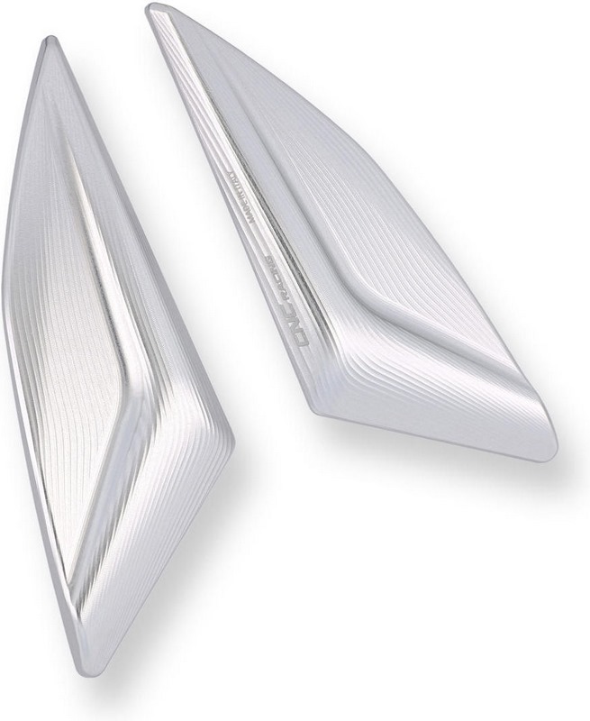 Mirror blank covers made in light alloy, machined from solid and then anodized, designed to cover the holes when the bikes mirrors have been removed.