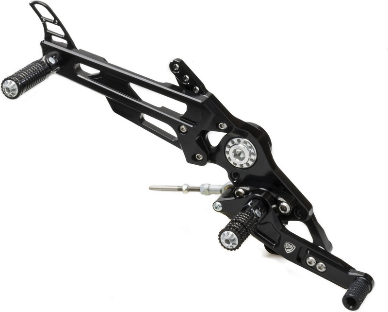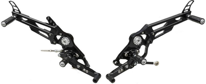 Rear sets formed entirely of aluminium AL 7075 T6 machined using a CNC machine from light alloy billet and then given an anodized surface finish.