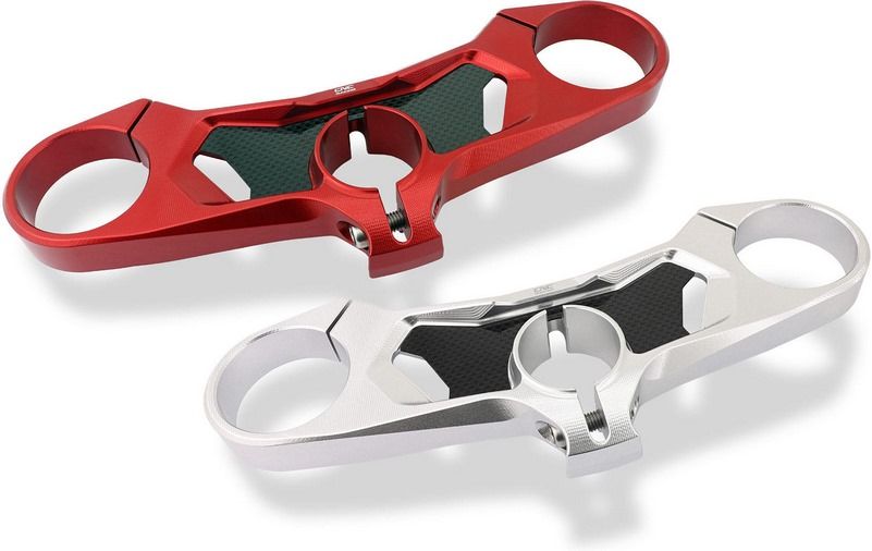 Top yoke Ducati Panigale V4 made in light alloy, machined from solid and then anodized, with carbon fiber inlay. The plate is designed with the OEM offset.