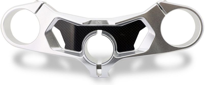 Top yoke Ducati Panigale V4 made in light alloy, machined from solid and then anodized, with carbon fiber inlay. The plate is designed with the OEM offset.
