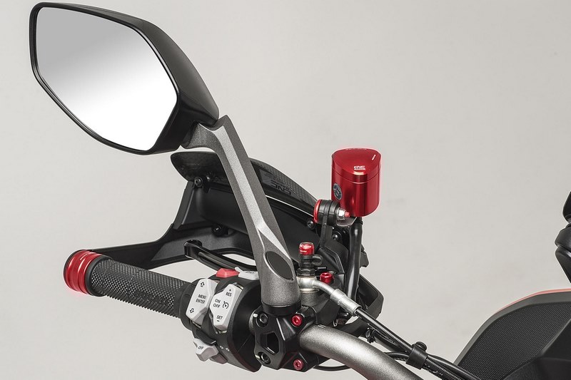 Fluid reservoir CNC machined from light alloy billet and then given a coloured anodized surface finish, which, in addition to coming in a wide range of colours, delivers quality and lasting service life.