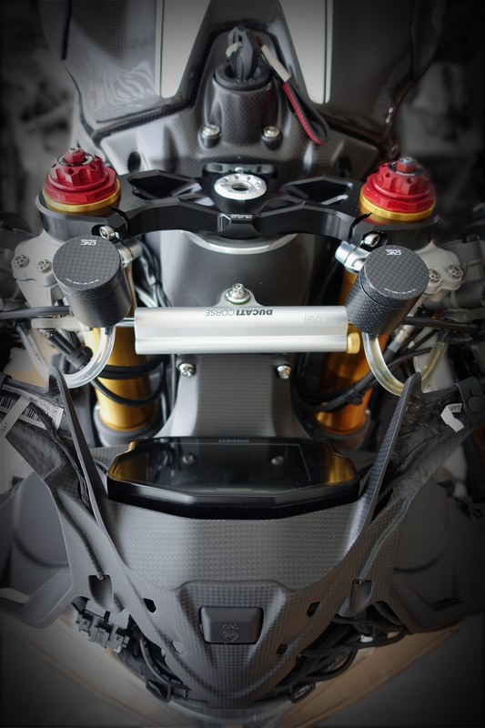 Carbon front brake fluid reservoir, produced with autoclave process, texture plain and matt or glossy surface finish.