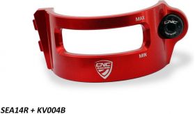 Half clamp for rear brake fluid tank of the Ducati Multistrada V4 made from a light alloy with subsequent surface anodized. Clamp replaces the oem part made in plastic without modifications.Aluminium screw sold separately, part number KV004.