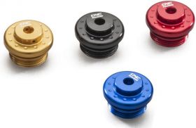 Oil filler cap machined from light alloy billet and then given an anodized surface finish. It replaces the stock plastic part, enhancing the look of the engine.