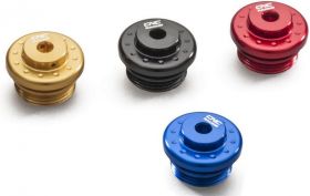 Oil filler cap machined from light alloy billet and then given an anodized surface finish. It replaces the stock plastic part, enhancing the look of the engine.