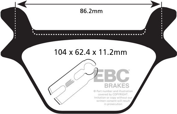 UK made using high tech ECO friendly pad compound that delivers fingertip stopping power. Suitable for all road bikes and scooters, the E327 grade compound has been a best seller for over 15 years with over 40 million sets sold worldwide. Fully TÜV tested and now ECE R 90 brake safety test appoved, these pads were rated by German Motorrad Magazine as a top quality organic pad and now proven suitable even as a sintered pad replacement. All EBC organic pads are now built on backing plates made with the patented Nucap NRS hook retention system guaranteeing zero chance of pad debonding after extended use or corrosion. Not for race or track use.