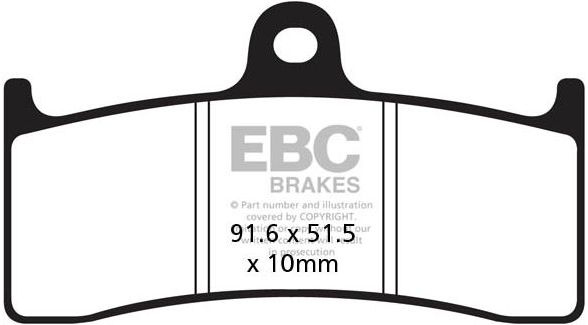 UK made using high tech ECO friendly pad compound that delivers fingertip stopping power. Suitable for all road bikes and scooters, the E327 grade compound has been a best seller for over 15 years with over 40 million sets sold worldwide. Fully TÜV tested and now ECE R 90 brake safety test appoved, these pads were rated by German Motorrad Magazine as a top quality organic pad and now proven suitable even as a sintered pad replacement. All EBC organic pads are now built on backing plates made with the patented Nucap NRS hook retention system guaranteeing zero chance of pad debonding after extended use or corrosion. Not for race or track use.