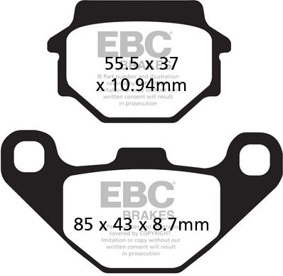 For street or off road use the hybrid carbon impregnated TT formula pads deliver medium lifetime with powerful cool disc temperature braking due to the carbon granules within the material and are extremely popular on ATV and MX sport bikes in non contaminated riding conditions or streetbike enduro models. For longer life or extreme mud riding, see the EBC Brakes MXS series pads or for ATV the R series heavy duty sintered pads.