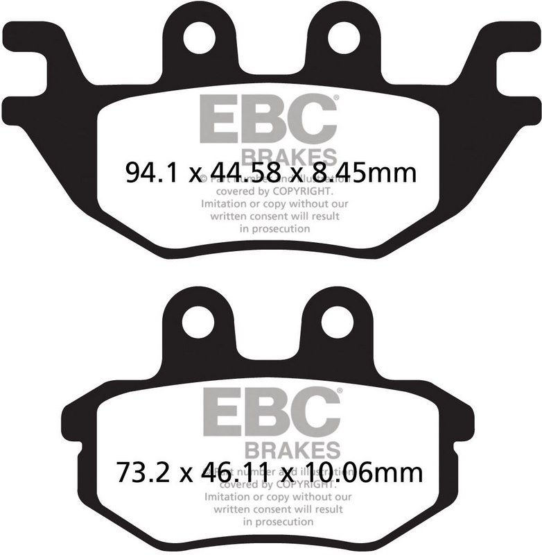 For street or off road use the hybrid carbon impregnated TT formula pads deliver medium lifetime with powerful cool disc temperature braking due to the carbon granules within the material and are extremely popular on ATV and MX sport bikes in non contaminated riding conditions or streetbike enduro models. For longer life or extreme mud riding, see the EBC Brakes MXS series pads or for ATV the R series heavy duty sintered pads.