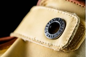 Metallic grommet and FIVE Custom embroidered label.