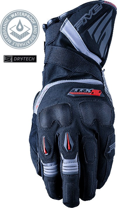 The TFX2 is made for adventurers who leave nothing to chance. And, in particular, for those who demand a protective and comfortable glove that allows them to ride worry-free on any type of road, or face anything that Mother Nature can throw at them. Because when you set off for adventure, you may set off under bright sunshine, and finish the day in the driving rain. With its water-repellent, laminated fabric construction and its 5_DRYTECH™ weatherproof/breathable membrane, it offers unparalleled dryness, while allowing for a healthy evaporation of perspiration, which often happens when you ride hard on unpaved tracks. The TFX2 offers many details that are essential for long rides, like the Clear Vision Pad™ visor-cleaning system, or the Touch Screen™ electronic device-handling system, which allows you to find your way easily using your GPS or smartphone, without taking your glove off. And we haven’t skimped on protection here, either, with its PVC shell and numerous reinforcements, on the topside, and its wide Kevlar® panel on the palm side, covering from the base of the hand all the way up to the hypothenar, under which three foam elements are inserted, for comfort. The palm also features a Digital PU reinforcement for impeccable handlebar grip when it rains. Comfortable, lightweight, and tough, both on falls and on rainstorms, the TFX2 will be there, ready to take on any adventure.