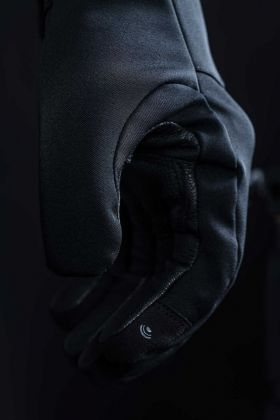 Because you might want to ride in the cold without getting weighed down by a long glove, we present FROST, a short glove designed to take on the coldest of winters. It combines a topside in weatherproof stretch fabric with a full-grain goatskin palm. Non-bulky, but warm: the thermal insulation is covered by a 180g Thinsulate™ internal lining and ribbed cuffs. Comfort lining in synthetic fur, on the top of the hand, makes FROST soft and cozy. Its weather-resistance comes from a HIPORA® membrane. In terms of protection, a one-piece PU shell is discreetly concealed underneath the outside surface, on the metacarpals. The palm features a TPR shell and synthetic leather reinforcement, as well as a non-slip reinforcement in large-mesh synthetic leather at the contact point with the handlebars. Add in a Touch Screen™ system on the index finger so you can handle your Touch Screen™s without removing your gloves, reflective elements placed on the back of the hand, an ultra-practical pull-tab, and you get a simple, discreet winter glove full of features that will slide beautifully under your favourite jacket, coat, or down jacket.