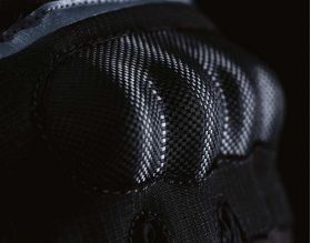 One-piece PU metacarpal-phalangeal protective shell underneath ventilated fabric.