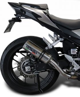 GPR EXHAUST SYSTEM COMPATIBLE FOR HONDA CB 500 X 2013/15 0 Full RACING line with M3 TITANIUM the kit include specific header, brackets, holder and fasteners,pipes stainless steel made (Aisi 304), silencer TITANIUM made. Developed from GPR thanks to Moto GP and SBK races experiences, the system has a conic shape from round diam 100mm , weight about 1,65 kg depending from motorbike of destination. GPR provide instructions available as drawings or video or pictures books.It is possible use panniers and central stand and sonda lambda boss is included when necessary. Available many sound file and pictures gallery,product is hand made in Italy,it has 2 years of international warranty