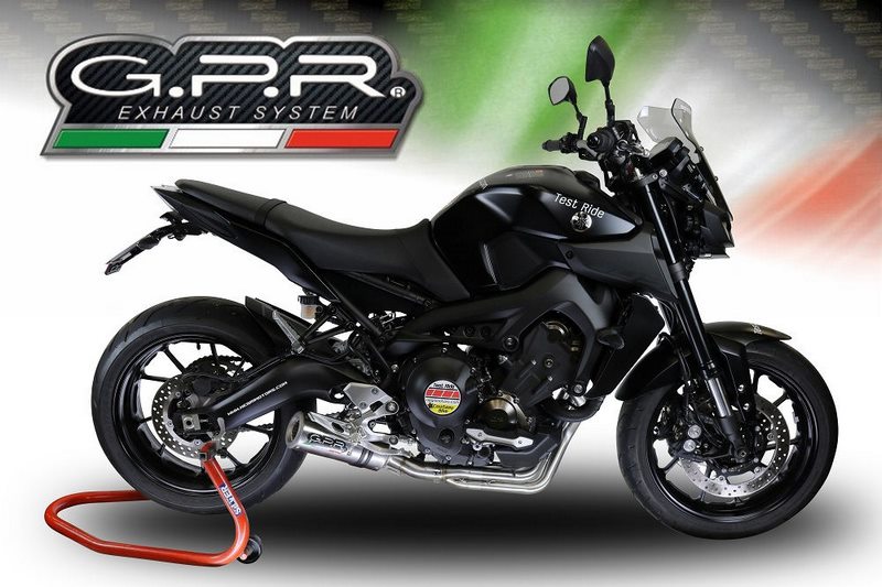 GPR EXHAUST SYSTEM COMPATIBLE FOR YAMAHA MT-09 / FZ-09 2014/16 0 Full Homologated M3INOX 304exhaust with manifold/header with approved catalyst, it has removable db killer (baffle) for racing use and even catalyst can be removed for races. Articles include specific header, brackets, holder and fasteners,pipes stainless steel made (Aisi 304), silencerINOX 304made. Developed from GPR thanks to Moto GP and SBK races experiences, the system has a conic shape from round Diam. 100mm, weight about 1,65 kg depending from motorbike of destination. GPR provide original homologation documents and instructions available as drawings or video or pictures books. If item is used in homologated configuration it doesnt require mapping, it is possible use panniers and central stand and sonda lambda boss is included when necessary. Available many sound file and pictures gallery,product is hand made in Italy, produced under European directives,it is street legal and it has 2 years of international warranty