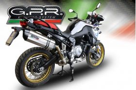GPR EXHAUST SYSTEM COMPATIBLE FOR BMW F 850 GS - ADVENTUREE 2018/19 0 HOMOLOGATED SONIC REVOLUTION EURO 4 NOISE LEVEL SLIP-ON EXHAUST SYSTEM , TITANIUM MADE, with dbkiller , it is possible remove noise restriction for racing use only with manunission of the special screws, after tampering, the system will be illegal for raod use. Homologated SONIC REVOLUTION Slip-on kit with removable db killer (baffle) for racing use,it include specific link pipe, brackets, holder and fasteners, link pipe and caps totally stainless steel made (Aisi 304) while silencer body is made by TITANIUM. Developed from GPR thanks to Moto GP and SBK races experiences, the system has a CONICAL shape, Diam. 100MM - 70 >100, medium weight about 1,86 kg depending from motorbike of destination. GPR provide original homologation documents and instructions available as drawings or video or pictures books. If item is used in homologated configuration it doesnt require mapping, it is possible use panniers and central stand and sonda lambda boss is included when necessary. Available many sound file and pictures gallery,product is hand made in Italy, produced under European directives,it is street legal and it has 2 years of international warranty