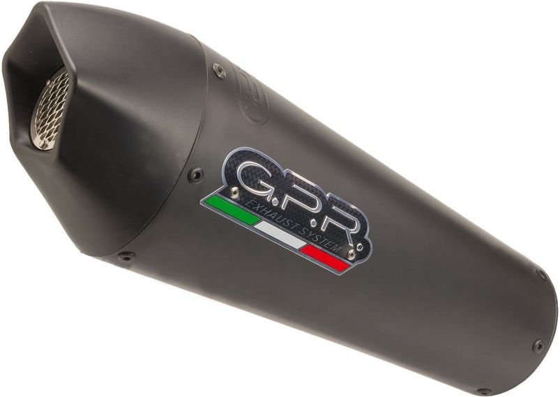 GPR EXHAUST SYSTEM COMPATIBLE FOR BMW R 1200 RS LC 2017/19 e4 0 Homologated new GPE 50° ANNIVERSARY Slip-on kit with removable db killer (baffle) for racing use,it include specific link pipe, brackets, holder and fasteners. Pipe work totally stainless steel made (Aisi 304), while silencer is BLACK TITANIUM, with ceramic traetment, made with exit cap Ergal made with pentagonal 50° Anniversary cover. Developed from GPR thanks to Moto GP and SBK races experiences, the system has a conic shape from round to oval,it start with Diam. 96 to 130mm, weight about 1,65 kg depending from motorbike of destination. GPR provide original homologation documents and instructions available as drawings or video or pictures books. If item is used in homologated configuration it doesnt require mapping, it is possible use panniers and central stand and sonda lambda boss is included when necessary. Available many sound file and pictures gallery,product is hand made in Italy, produced under European directives,it is street legal and it has 2 years of international warranty