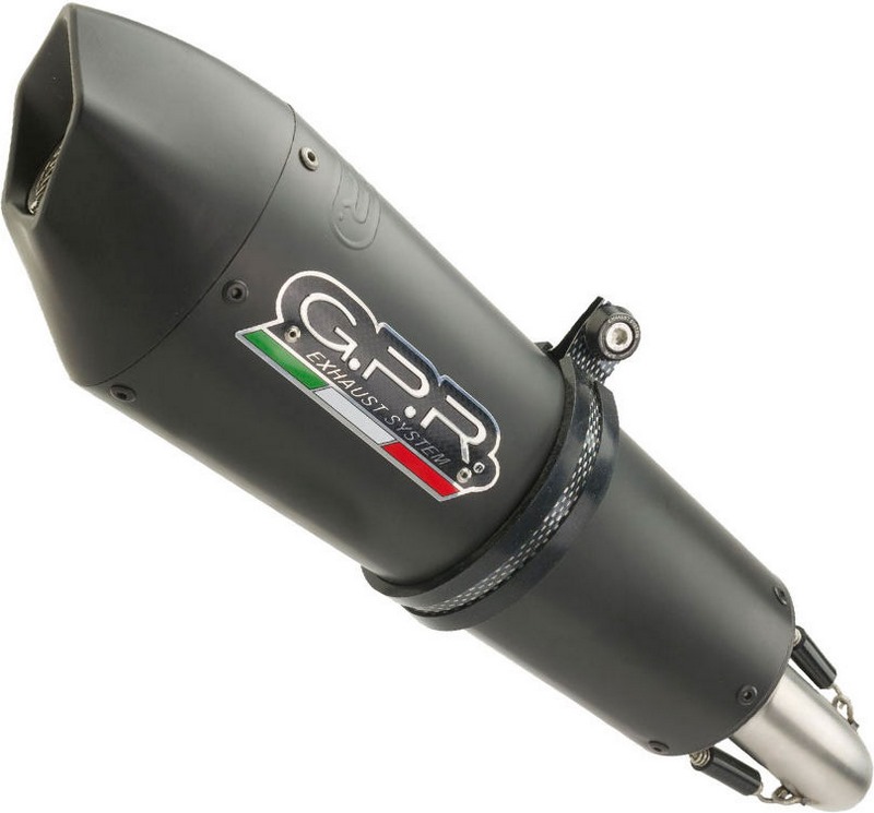 GPR EXHAUST SYSTEM COMPATIBLE FOR BMW R 1200 RT 2017/19 e4 0 Homologated new GPE 50° ANNIVERSARY Slip-on kit with removable db killer (baffle) for racing use,it include specific link pipe, brackets, holder and fasteners. Pipe work totally stainless steel made (Aisi 304), while silencer is BLACK TITANIUM, with ceramic traetment, made with exit cap Ergal made with pentagonal 50° Anniversary cover. Developed from GPR thanks to Moto GP and SBK races experiences, the system has a conic shape from round to oval,it start with Diam. 96 to 130mm, weight about 1,65 kg depending from motorbike of destination. GPR provide original homologation documents and instructions available as drawings or video or pictures books. If item is used in homologated configuration it doesnt require mapping, it is possible use panniers and central stand and sonda lambda boss is included when necessary. Available many sound file and pictures gallery,product is hand made in Italy, produced under European directives,it is street legal and it has 2 years of international warranty