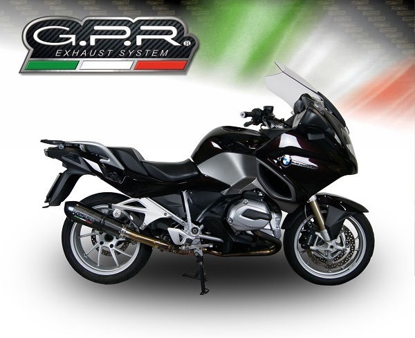 GPR EXHAUST SYSTEM COMPATIBLE FOR BMW R 1200 RT 2017/19 e4 0 Homologated new GPE 50° ANNIVERSARY Slip-on kit with removable db killer (baffle) for racing use,it include specific link pipe, brackets, holder and fasteners. Pipe work totally stainless steel made (Aisi 304), while silencer is Poppy made a special stainless pentagonal 50° Anniversary with exit cap Ergal made with pentagonal 50° Anniversary cover. Developed from GPR thanks to Moto GP and SBK races experiences, the system has a conic shape from round to oval,it start with Diam. 96 to 130mm, weight about 1,95 kg depending from motorbike of destination. GPR provide original homologation documents and instructions available as drawings or video or pictures books. If item is used in homologated configuration it doesnt require mapping, it is possible use panniers and central stand and sonda lambda boss is included when necessary. Available many sound file and pictures gallery,product is hand made in Italy, produced under European directives,it is street legal and it has 2 years of international warranty