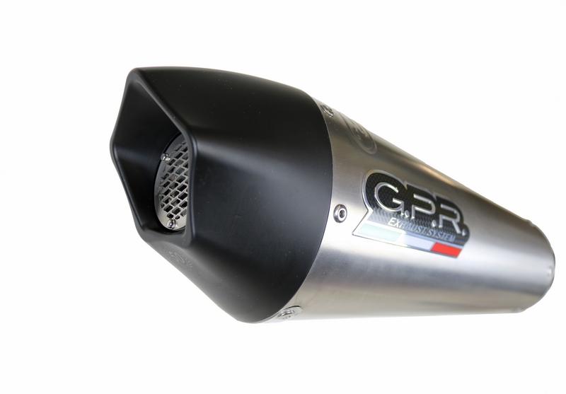 GPR EXHAUST SYSTEM COMPATIBLE FOR KTM DUKE 690 2017/19 e4 Mandatory to use the racing KTM map MID-FULL SYSTEM HOMOLOGATED new GPE 50° ANNIVERSARY TITANIUM exhaust with manifold/header with approved catalyst, it has removable db killer (baffle) for racing use and even catalyst can be removed for races. Articles include specific the mid header, system developed to can be installed without cut anything. Brackets, holder and fasteners are included,pipes stainless steel made (Aisi 304), silencer TITANIUM made, with pentagonal 50° Anniversary exit capErgal made and enter cap made by CNC machineries. Developed from GPR thanks to Moto GP and SBK races experiences, the system has a conic shape from round to oval,it start with Diam. 96 to 130mm, weight about 1,65 kg depending from motorbike of destination. GPR provide original homologation documents and instructions available as drawings or video or pictures books. If item is used in homologated configuration it doesnt require mapping, it is possible use panniers and central stand and sonda lambda boss is included when necessary. Available many sound file and pictures gallery,product is hand made in Italy, produced under European directives,it is street legal and it has 2 years of international warranty