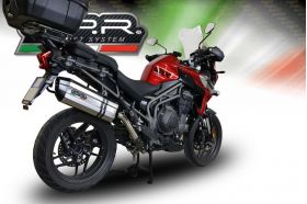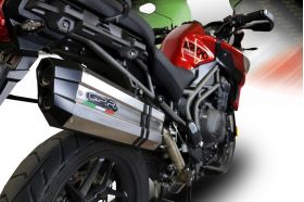 GPR EXHAUST SYSTEM COMPATIBLE FOR TRIUMPH TIGER 1200 explorer 2017/19 e4 TIGER 1200 explorer XR - XRT - XCX - XCA HOMOLOGATED SONIC REVOLUTION EURO 4 NOISE LEVEL SLIP-ON EXHAUST SYSTEM , TITANIUM MADE, with dbkiller , it is possible remove noise restriction for racing use only with manunission of the special screws, after tampering, the system will be illegal for raod use. Homologated SONIC REVOLUTION Slip-on kit with removable db killer (baffle) for racing use,it include specific link pipe, brackets, holder and fasteners, link pipe and caps totally stainless steel made (Aisi 304) while silencer body is made by TITANIUM. Developed from GPR thanks to Moto GP and SBK races experiences, the system has a CONICAL shape, Diam. 100MM - 70 >100, medium weight about 1,86 kg depending from motorbike of destination. GPR provide original homologation documents and instructions available as drawings or video or pictures books. If item is used in homologated configuration it doesnt require mapping, it is possible use panniers and central stand and sonda lambda boss is included when necessary. Available many sound file and pictures gallery,product is hand made in Italy, produced under European directives,it is street legal and it has 2 years of international warranty