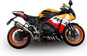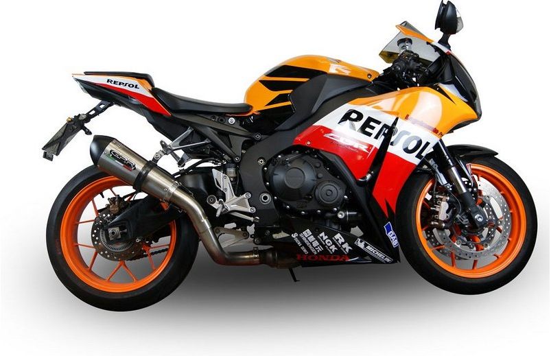 GPR EXHAUST SYSTEM COMPATIBLE FOR HONDA CBR 1000 RR 2014/16 (NO USA / NO CANADA) Short type M3 BLACK TITANIUM racing slip-on, MOTO 3 MOTO 3 WORLD CHAMPION REPLICAFor racing use only,it include specific link pipe, brackets, holder and fasteners. Pipe work totally stainless steel made (Aisi 304), while silencer is titanium made . Developed from GPR thanks to Moto 3 and SBK races experiences, the system has a round shape Diam.100, weight about 1,55 kg depending from motorbike of destination. GPR provide original instructions available as drawings or video or pictures books. It require mapping with original KTM open map, it is possible use panniers and central stand and sonda lambda boss is included when necessary. Available many sound file and pictures gallery,product is hand made in Italy, produced under European directives,it is illegal for street use and it has 2 years of international warranty