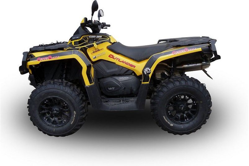 GPR EXHAUST SYSTEM COMPATIBLE FOR CAN AM OUTLANDER 1000 V-T (SHORT CHASSIS) 0 Homologated DEEPTONE INOX Slip-on kit with removable db killer (baffle) for racing use,it include specific link pipe, brackets, holder and fasteners, link pipe and caps totally stainless steel made (Aisi 304) while silencer body is made by genuine INOX. Developed from GPR thanks to Moto GP and SBK races experiences, the system has a ROUND shape, Diam. 100mm, medium weight about 1,85 kg depending from ATV of destination. GPR provide original homologation documents and instructions available as drawings or video or pictures books. If item is used in homologated configuration it doesnt require mapping.Product is hand made in Italy, produced under European directives,it is street legal and it has 2 years of international warranty